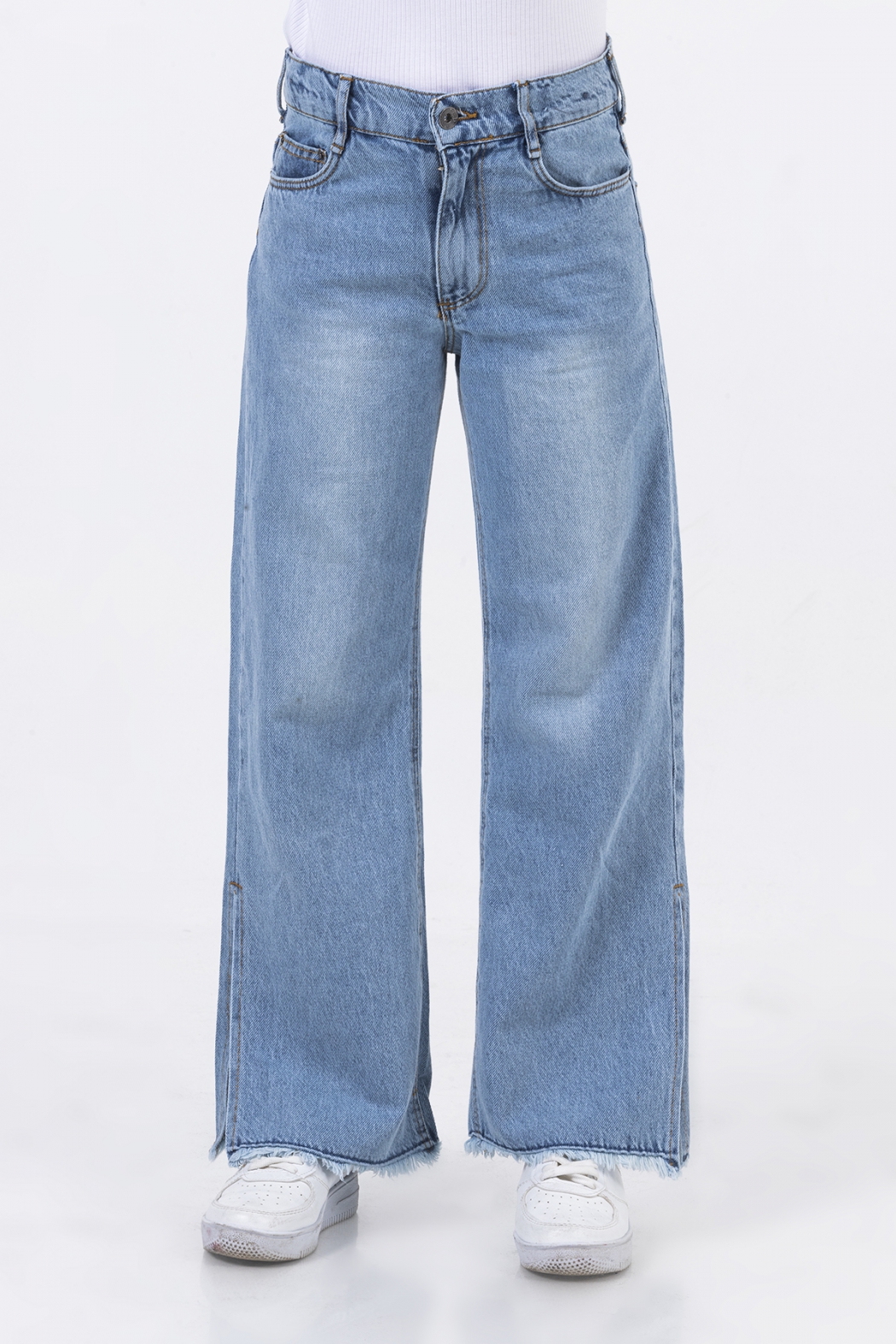 Модные джинсы для девочки оптом с разрезами по бокам. Комфортная посадка не сковывает движения, при этом не делает джинсы слишком объёмными. Удобная функциональная резинка в поясе позволяет регулировать объем на талии. Ребенок может сочетать джинсы с любым верхом и наслаждаться разными стилями, в зависимости от настроения.