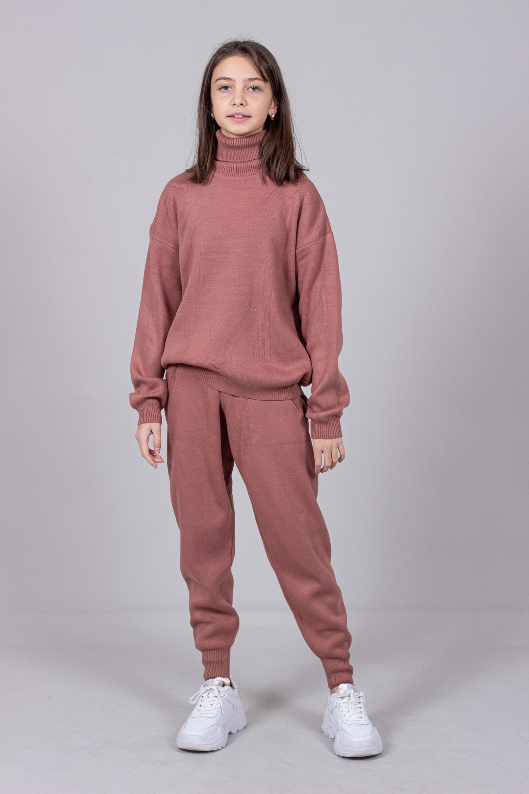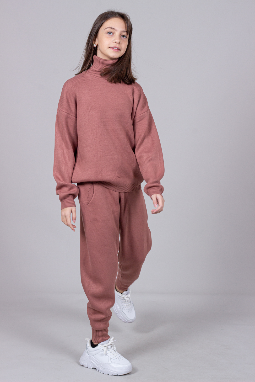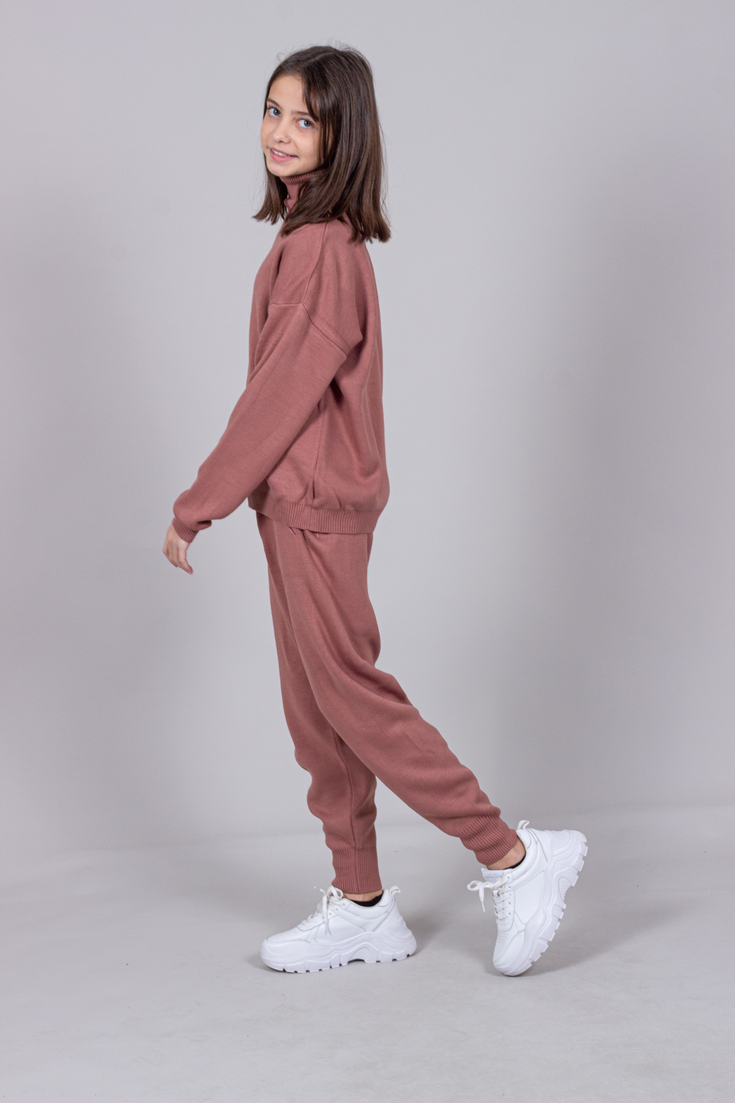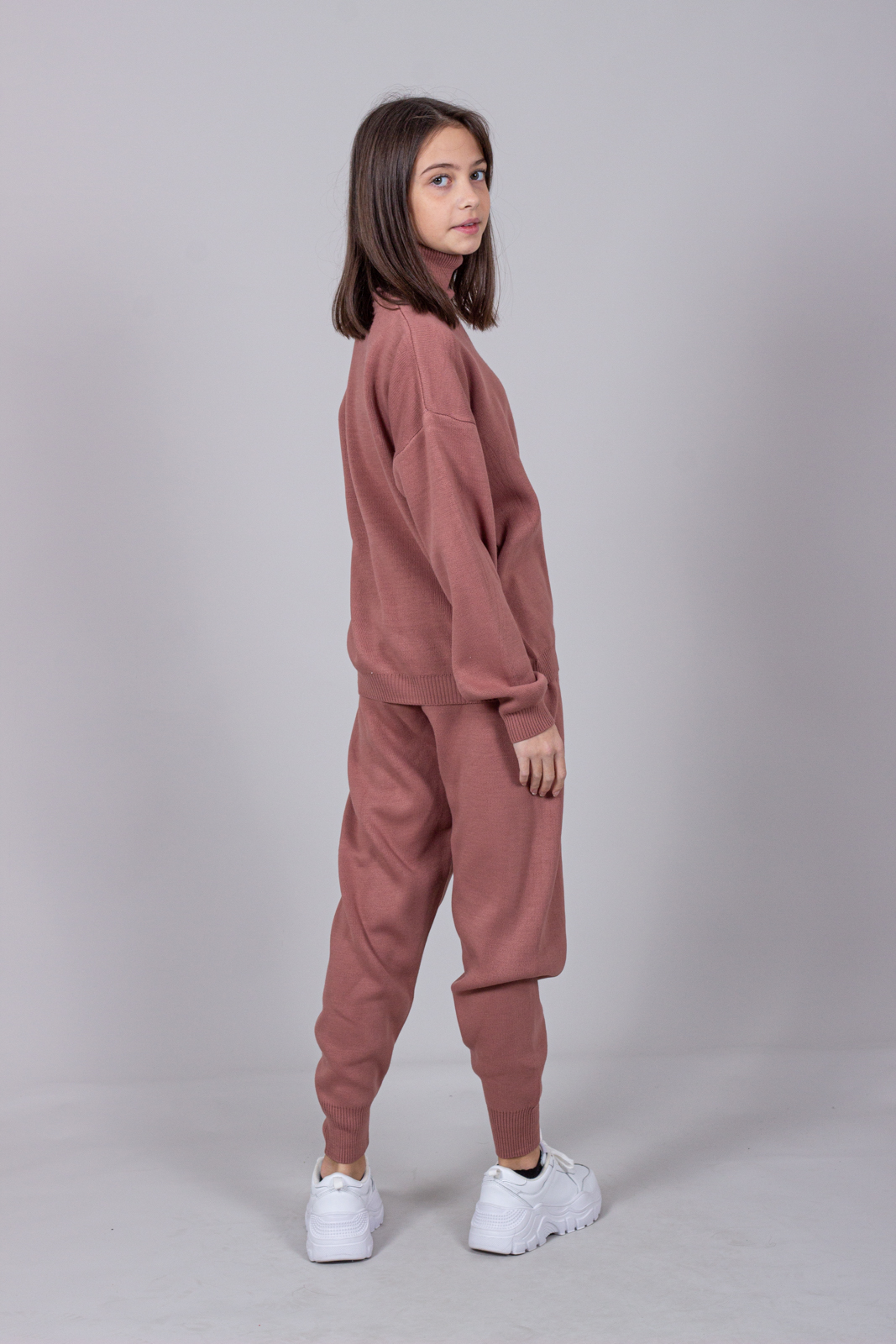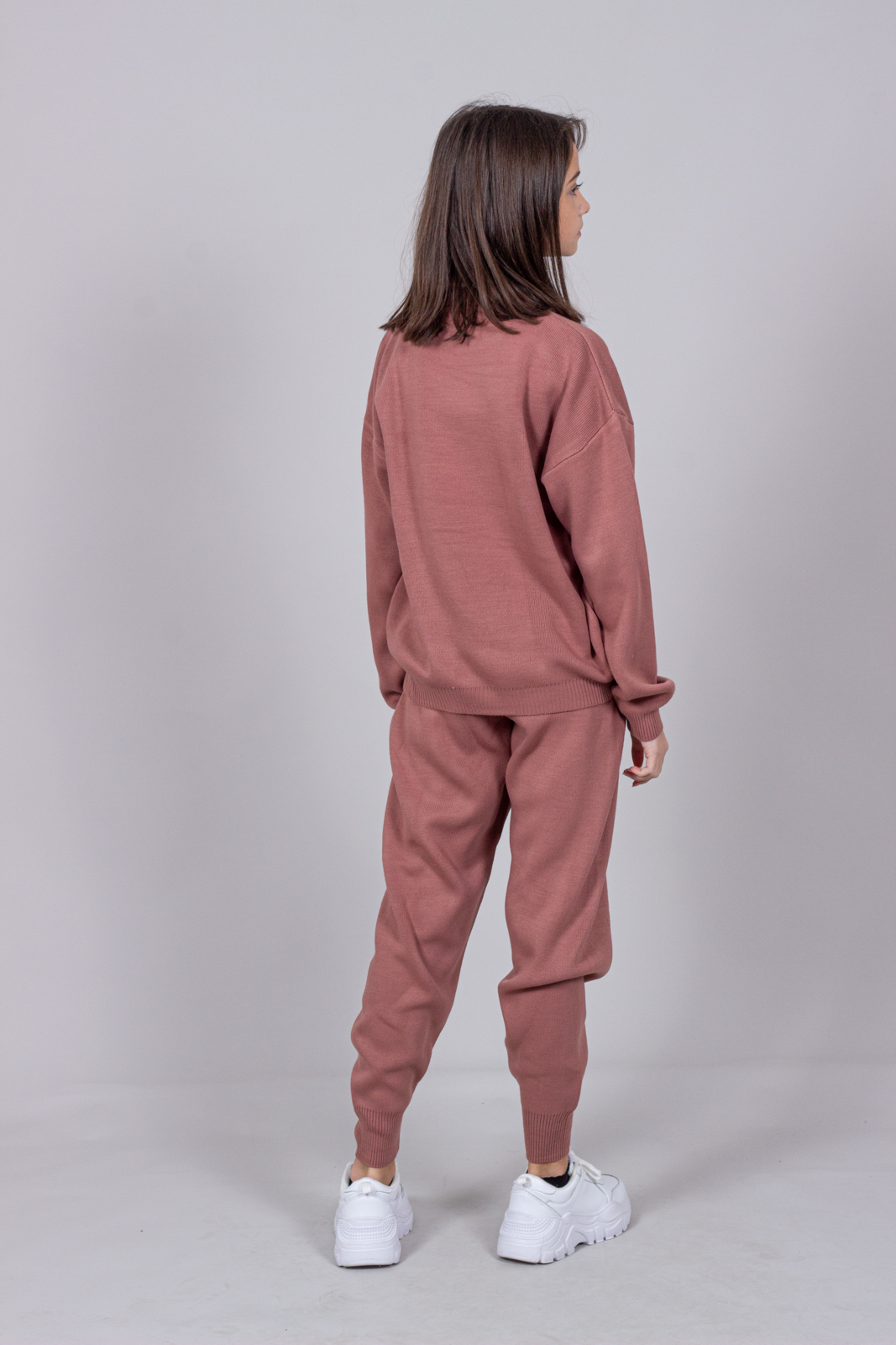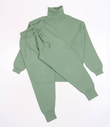 Трикотажный костюм для повседневной жизни выполнен из качественной турецкой пряжи. Костюм смотрится элегантно и стильно, отлично подходит для дома и отдыха.