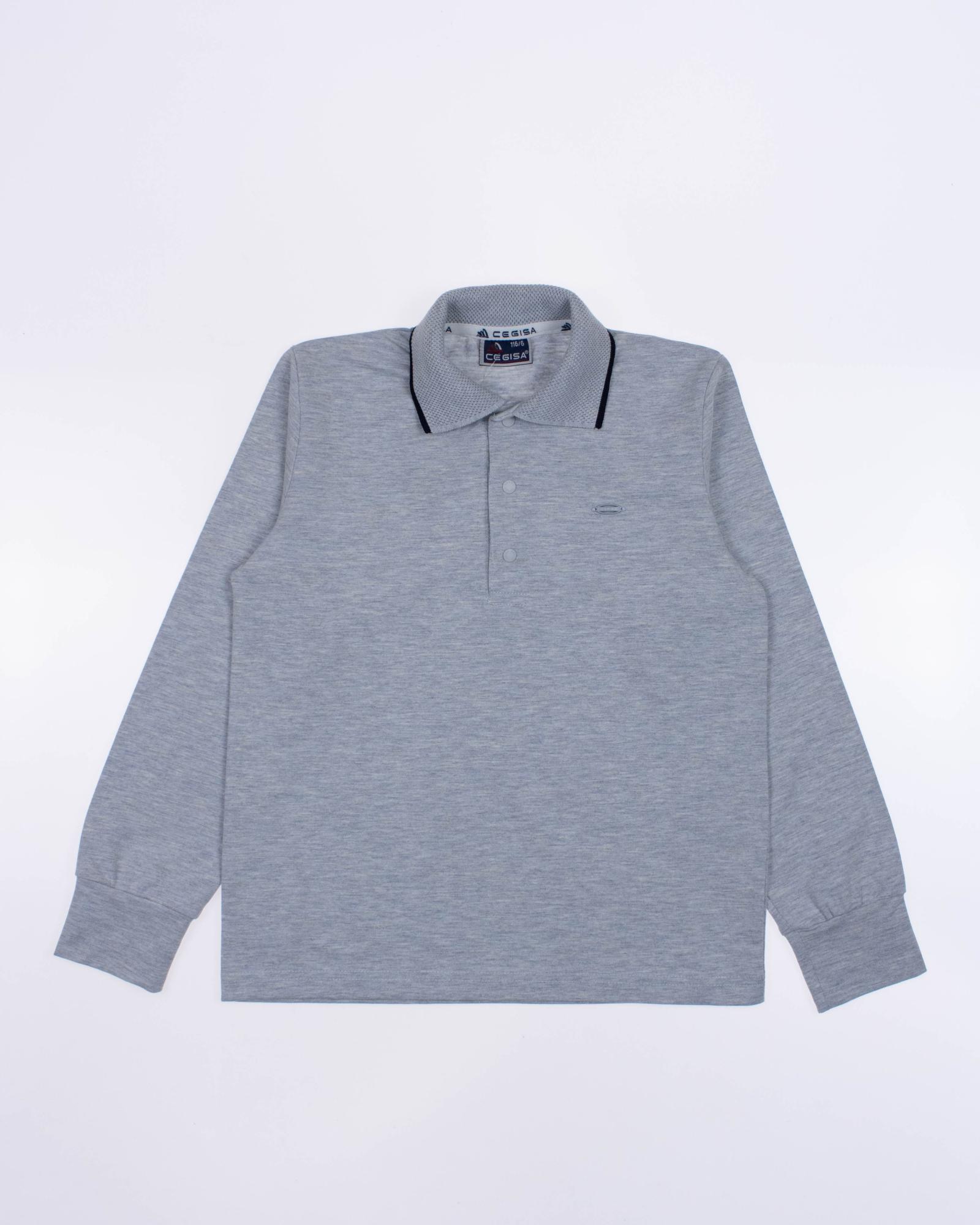 Детское однотонное поло Cegisa для мальчика оптом. Поло прямого силуэта имеет застежку- кнопки, вязаный отложной воротничок, рукава оформлены манжетами.