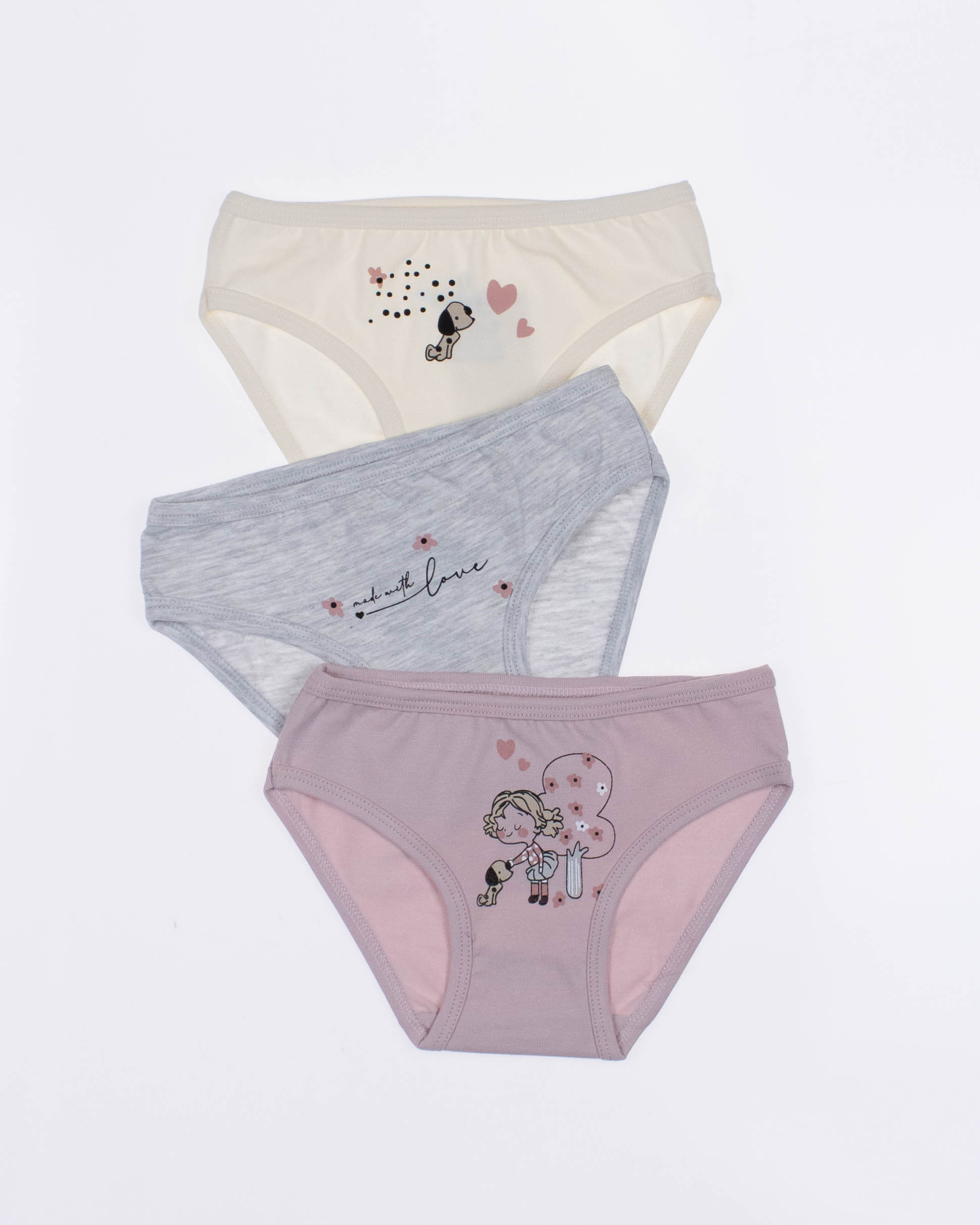 Tрусики BAYKAR для девочки оптом в нежной цветовой гамме. Милый принт, резинки не впиваются в нежную кожу. Эластичное полотно прилегает к бедрам, натуральный хлопок обладает дышащими свойствами. Трусики представлены в трех пастельных оттенках.