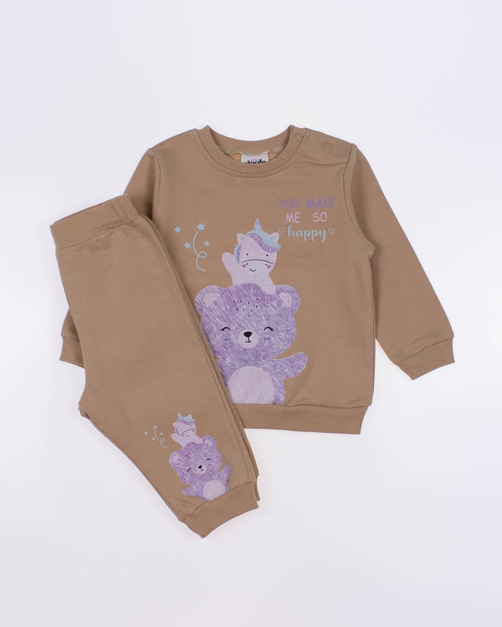 Мы предлагаем оптовые продажи детской одежды производства Турция. Хлопковый костюм PICOLA  оптом выполнен из 100% хлопка, что гарантирует комфорт и безопасность для самых маленьких детей. Свитшот имеет удобную застежку-кнопки на плече, что облегчит процесс надевания и снятия одежды. Штанишки с мягкими манжетами на эластичном поясе идеально подходят для ношения с подгузником, обеспечивая свободу движений и комфорт. Детский милый принт на костюме поможет развить фантазию и воображение ребенка, делая его образ ярким и запоминающимся. Костюм PICOLA - отличный выбор для маленьких модниц и их заботливых родителей. Не упустите возможность приобрести этот уникальный товар оптом по выгодной цене!